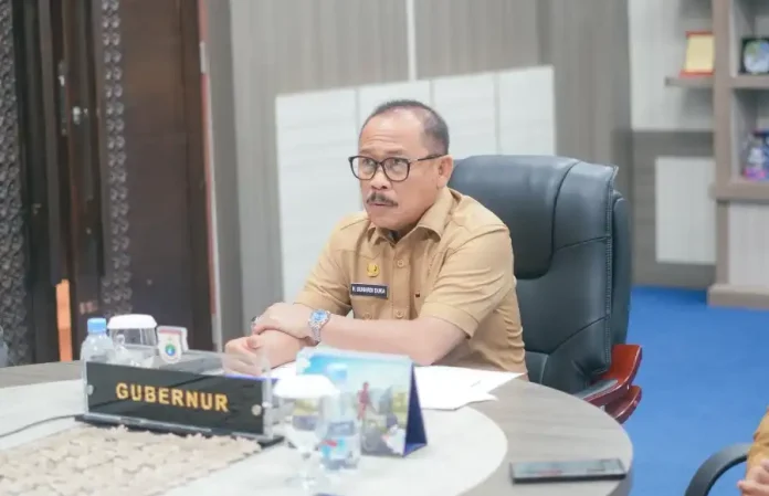 Kepala Badan Pengembangan Sumber Daya Manusia (BPSDM) Provinsi Sulawesi Barat, drg. H. Asran Masdy, mendampingi Gubernur Sulbar Suhardi Duka pada acara pembukaan Pendidikan dan Pelatihan Digital Leadership Academy (DLA) yang berlangsung secara virtual dari ruang kerja Gubernur, Senin 6 Oktober 2025.