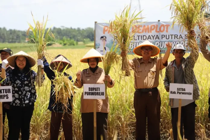 “Peningkatan kapasitas petani, efisiensi produksi, serta optimalisasi lahan pertanian menjadi perhatian penting Pemerintah Daerah dalam kerangka pembangunan yang selaras dengan visi Purworejo Berseri,” kata Bupati Purworejo Yuli Hastuti SH saat menghadiri Panen Demplot (Demonstration Plot/lahan percontohan) padi di Desa Harjobinangun, Kecamatan Grabag, Selasa (14/10).