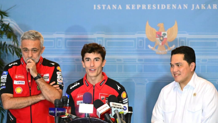 Presiden Prabowo Subianto menekankan pentingnya pengembangan sport tourism serta pembinaan atlet nasional saat menerima kunjungan juara dunia MotoGP Marc Marquez bersama dua pembalap muda Indonesia, Mario Aji dan Veda Ega Pratama, di Istana Merdeka, Jakarta, pada Selasa, 30 September 2025.