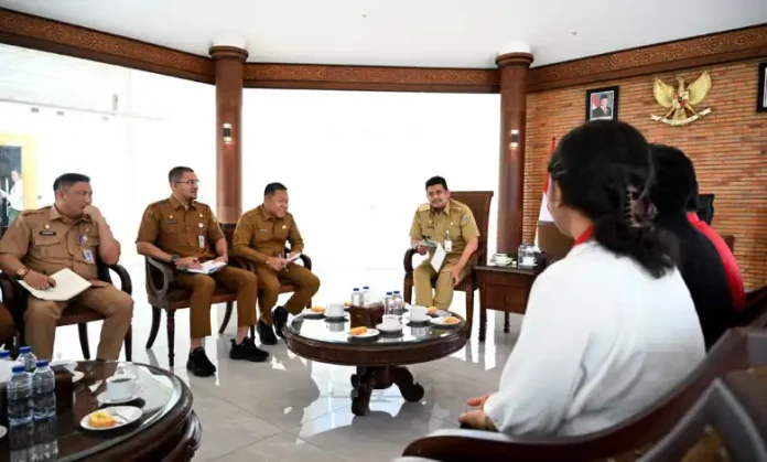 Gubernur Sumatera Utara (Sumut) Muhammad Bobby Afif Nasution menerima kunjungan pengurus Dewan Pimpinan Daerah (DPD) Gerakan Mahasiswa Nasional Indonesia (GMNI) Sumut di Kantor Gubernur, Jalan Diponegoro Nomor 30 Medan, Selasa (18/11). Pertemuan tersebut menegaskan komitmen GMNI Sumut untuk berkolaborasi mendukung program-program pembangunan, baik di tingkat provinsi maupun nasional.