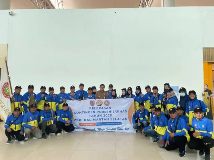 Gubernur Kalimantan Selatan (Kalsel), H. Muhidin secara resmi melepas kontingen Persatuan Guru Republik Indonesia (PGRI) Kalsel yang akan berlaga pada Pekan Olahraga, Seni, dan Pembelajaran Tingkat Nasional (PORSENIJARNAS) 2025 di Bandung, Jawa Barat, 25–28 November 2025.