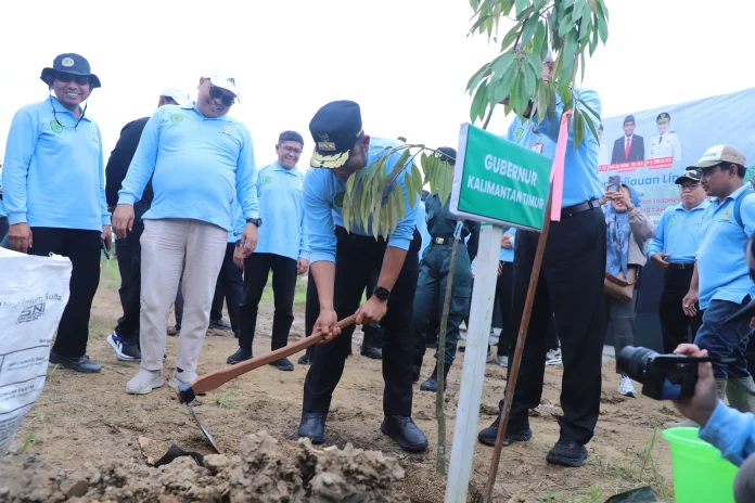 Kegiatan tersebut ditandai dengan penanaman serentak 1.000 pohon di lahan seluas sekitar 5 hektar, terdiri dari berbagai jenis pohon buah dan peneduh seperti durian, kelengkeng, mangga, alpukat, jeruk, ketapang, tabebuya, tanjung, jambu air, jambu Kristal (rey/pt)dan pohon pucuk merah.