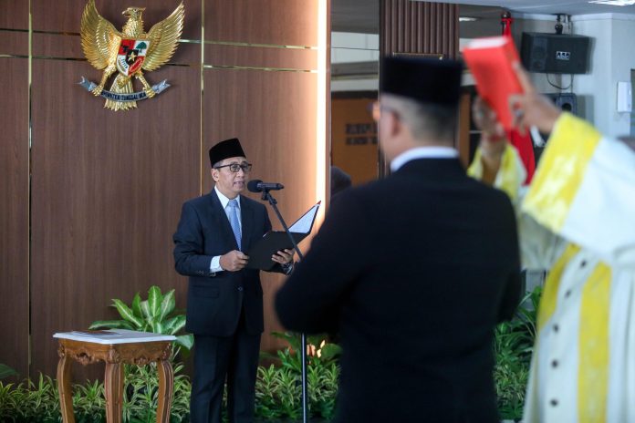 Usai pelantikan, para pejabat yang dilantik menandatangani pakta integritas dan berita acara pelantikan sebagai bentuk komitmen terhadap tanggung jawab dan etika jabatan.