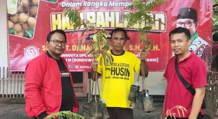 Memperingati Hari Pahlawan 10 November 2025, anggota DPR RI Fraksi PDI Perjuangan, Sonny T Danaparamita, melalui Rumah Aspirasi Setretanan Dhibik (STD), menyalurkan bibit tanaman produktif unggulan kepada sejumlah kelompok tani di berbagai kecamatan di Kabupaten Bondowoso.