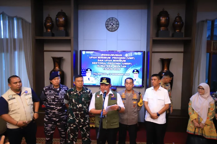Gubernur Sumatera Selatan H. Herman Deru secara resmi mengesahkan Upah Minimum Provinsi (UMP) Sumatera Selatan Tahun 2026 yang mengalami kenaikan sebesar 7,10 persen. Penetapan tersebut dilakukan pada Jumat, 19 Desember 2025, melalui Keputusan Gubernur Sumsel Nomor 963/KPTS/ Disnakertrans/2025 yang langsung ditandatangani Gubernur.