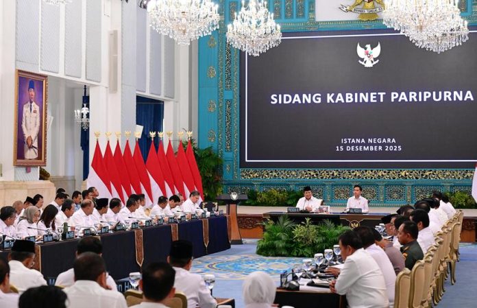 Pemerintah mengerahkan seluruh kementerian dan lembaga untuk mempercepat penanganan bencana banjir yang melanda Provinsi Aceh, Sumatera Utara, dan Sumatera Barat. Langkah ini ditegaskan dalam Sidang Kabinet Paripurna yang dipimpin Presiden RI Prabowo Subianto di Istana Negara, Jakarta, Senin (15/12/2025).