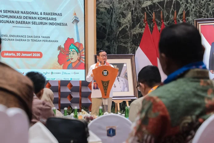 Gubernur DKI Jakarta, Pramono Anung, membuka Seminar Nasional dan Rapat Kerja Nasional (Rakernas) Forum Komunikasi Dewan Komisaris Bank Pembangunan Daerah Seluruh Indonesia (FKDK BPDSI) di Balai Kota Jakarta, pada Selasa (20/1). Mengusung tema “Resiliensi, Endurance, dan Daya Tahan BPD di Tengah Perubahan”, forum ini diselenggarakan untuk memperkuat peran Bank Pembangunan Daerah (BPD) sebagai institusi yang tangguh, kontributif, dan berdaya saing.