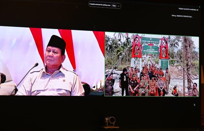 Presiden Prabowo Subianto melakukan dialog langsung dengan para kepala daerah, aparat, dan masyarakat dari berbagai wilayah saat meresmikan 218 jembatan di Indonesia. Melalui konferensi video dari kediaman pribadinya di Hambalang, Bogor, Jawa Barat, Senin (9/3), Kepala Negara mendengarkan laporan pembangunan jembatan sekaligus berbincang dengan warga yang kini merasakan langsung manfaat infrastruktur tersebut, terutama anak-anak sekolah di daerah terpencil.