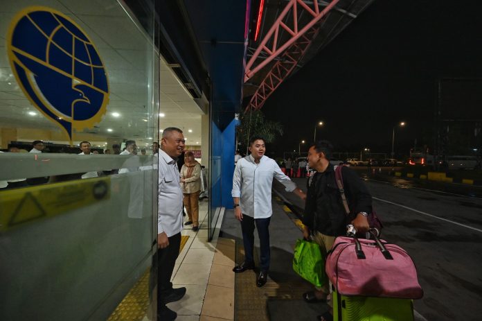 Menteri Perhubungan (Menhub) Dudy Purwagandhi bersama Sekretaris Kabinet Teddy Indra Wijaya memantau langsung situasi puncak arus balik Lebaran gelombang I (pertama) di Terminal Terpadu Pulo Gebang, Jakarta, Rabu (25/3) dini hari. Dalam kesempatan tersebut, keduanya juga menyambut kedatangan peserta mudik gratis dan pemudik balik lainnya dari berbagai daerah, seperti Jawa Tengah, Jawa Timur, serta Sumatera.