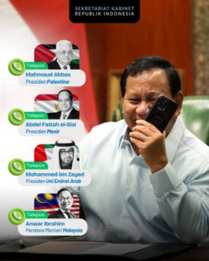 Selain Presiden Palestina, Presiden Prabowo juga melakukan komunikasi serupa dengan Presiden Mesir Abdel Fattah el-Sisi, Presiden Uni Emirat Arab Mohammed bin Zayed Al Nahyan, serta Perdana Menteri Malaysia Anwar Ibrahim.
