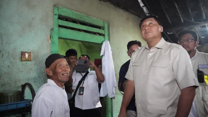 Menteri Perumahan dan Kawasan Permukiman (PKP) Maruarar Sirait (Ara) bersama Kepala Staf Kepresidenan Muhammad Qodari dan Kepala Badan Pusat Statistik (BPS) meninjau langsung lokasi calon penerima Bantuan Stimulan Perumahan Swadaya (BSPS)/bedah rumah di Desa Pete, Kecamatan Tigaraksa, Kabupaten Tangerang, Banten, Senin (30/3).