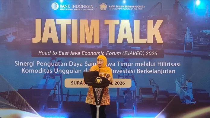 Hal tersebut disampaikan Khofifah saat menjadi keynote speaker dalam kegiatan Jatim Talk Road to East Java Economic Forum (EJAVEC) 2026 yang mengangkat tema “Sinergi Penguatan Daya Saing Jawa Timur melalui Hilirisasi Komoditas Unggulan dan Iklim Investasi Berkelanjutan”, Rabu (1/4).