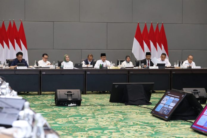 “Kehadiran kita pada hari ini penting sebagai langkah koordinasi untuk menuntaskan pekerjaan Inpres,” ujar Menteri Koordinator Bidang Pemberdayaan Masyarakat Abdul Muhaimin Iskandar atau Cak Imin saat membuka Rapat Tingkat Menteri terkait Evaluasi Capaian Pelaksanaan Instruksi Presiden No. 8/2025, di Kantor BPJS Ketenagakerjaan, Senin (27/4/2026).