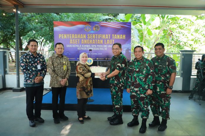 Kantor Wilayah Badan Pertanahan Nasional (Kanwil BPN) Provinsi DKI Jakarta menyerahkan Sertipikat Hak Pakai atas aset tanah milik TNI Angkatan Laut yang berada di wilayah Jakarta Utara. Penyerahan dilakukan langsung oleh Kepala Kantor Wilayah (Kakanwil) BPN DKI Jakarta, Erry Juliani Pasoreh kepada Komandan Kodaeral III, Laksamana Muda TNI Uki Prasetia sebagai bagian dari upaya pengamanan aset negara dan percepatan legalisasi tanah pemerintah.